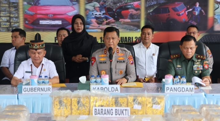 Palangka Raya, binarnusa.com – Polda Kalteng dan jajaran berhasil mengungkap kasus tindak pidana narkoba dengan mengamankan 2 pelaku berinisial ME (28) dan H (37) dengan barang bukti 35,185 kg sabu dan 15.000 pil ekstasi jenis Inex. Penangkapan ini merupakan hasil kerja sama Polres Lamandau dan Polda Kalteng.(18/02/26)